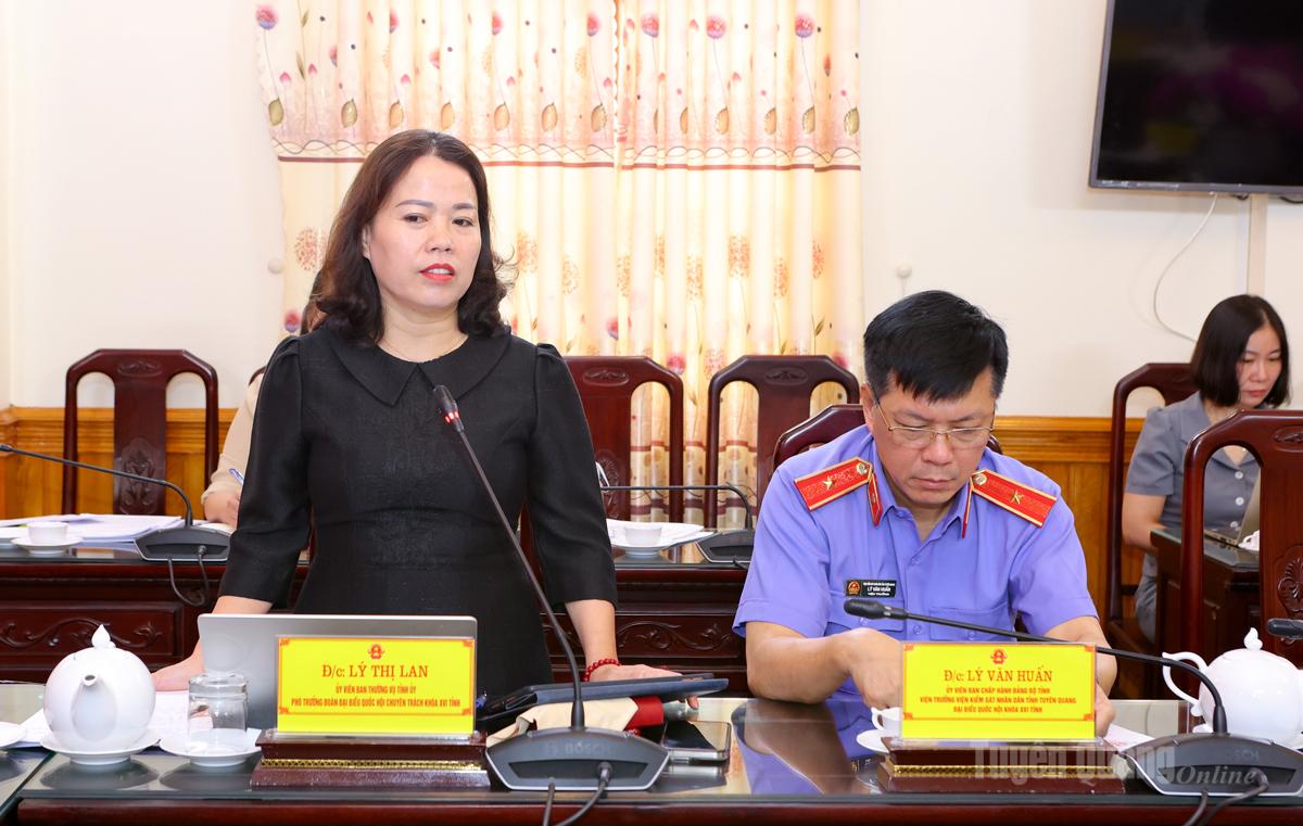 Đồng chí Lý Thị Lan, Ủy viên Ban Thường vụ Tỉnh ủy, Phó Trưởng đoàn hoạt động chuyên trách Đoàn ĐBQH tỉnh Tuyên Quang khóa XVI phát biểu ý kiến. |