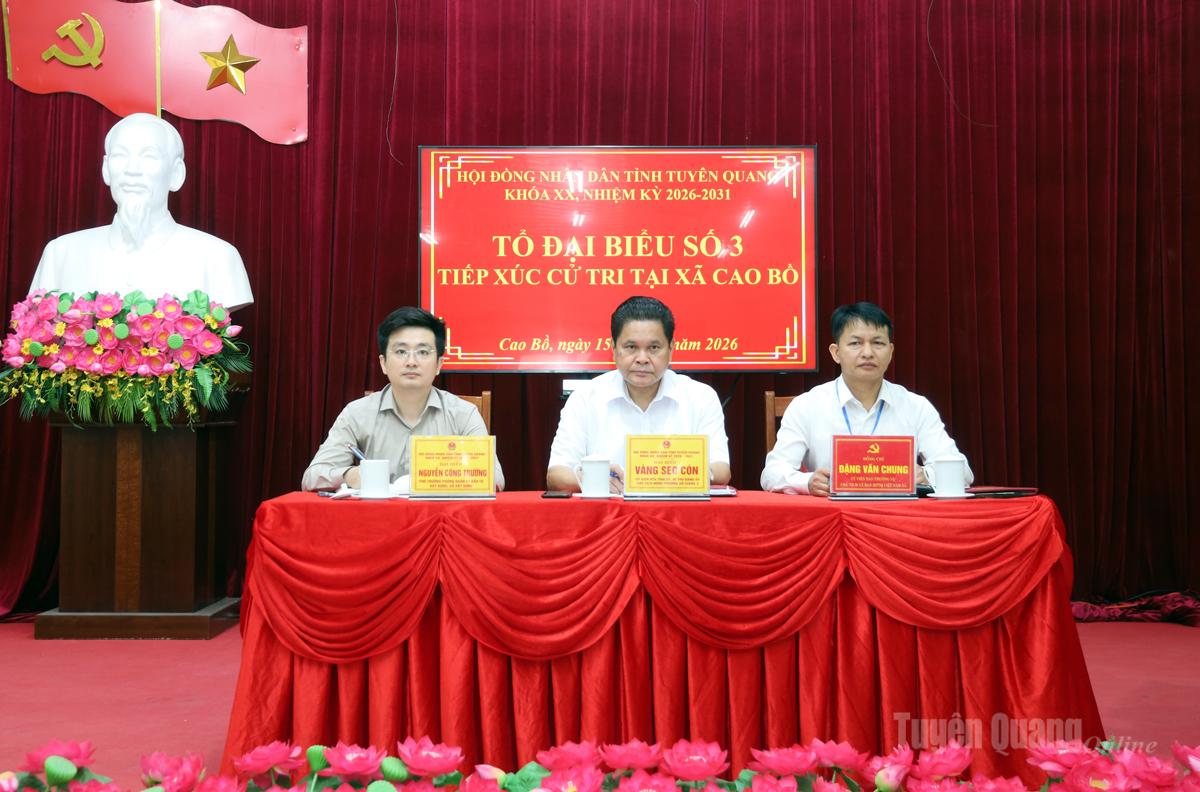 Tổ đại biểu số 3 gồm các đại biểu: Vàng Seo Cón, Ủy viên Ban Thường vụ Tỉnh ủy, Bí thư Đảng ủy, Chủ tịch HĐND phường Hà Giang 2; Nguyễn Công Trường, Phó Trưởng phòng Quản lý đầu tư xây dựng (Sở Xây dựng) tiếp xúc cử tri xã Cao Bồ.