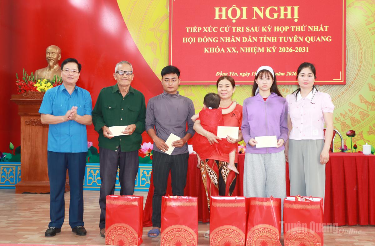 Tại buổi tiếp xúc, Tổ đại biểu số 5 HĐND tỉnh đã tặng 5 suất quà cho hộ nghèo, gia đình chính sách trên địa bàn xã Đồng Yên.