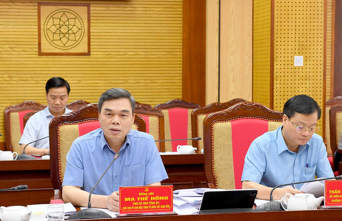 | Đồng chí Phó Bí thư Tỉnh ủy, Chủ tịch Ủy ban MTTQ Việt Nam tỉnh Ma Thế Hồng phát biểu tại cuộc họp,. |