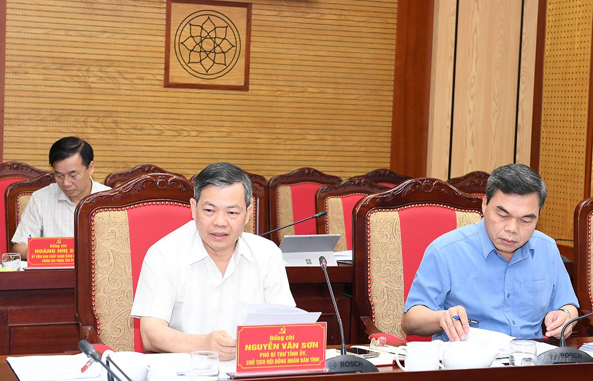 | Đồng chí Phó Bí thư Tỉnh ủy, Chủ tịch HĐND tỉnh Nguyễn Văn Sơn phát biểu tại cuộc họp. |