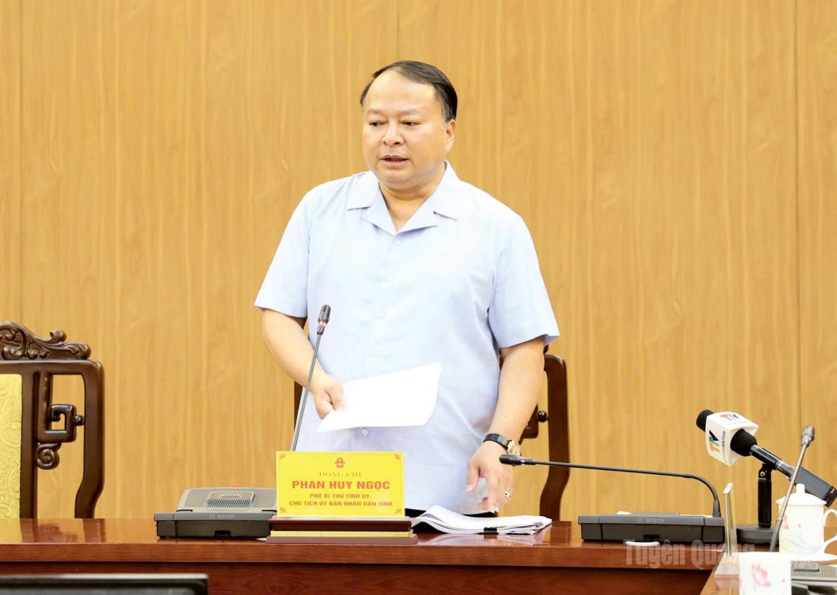 | Đồng chí Phan Huy Ngọc, Phó Bí thư Tỉnh ủy, Chủ tịch UBND tỉnh phát biểu kết luận cuộc họp. |