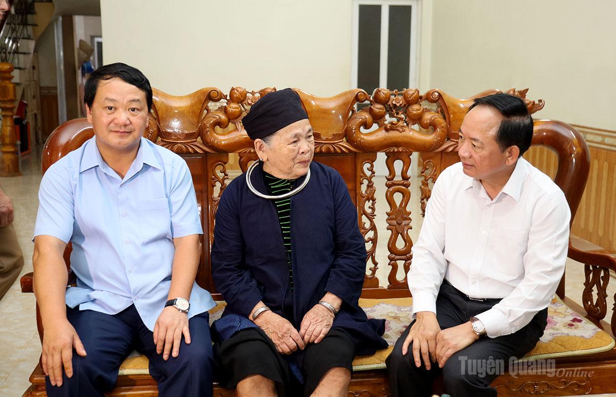 Các đồng chí lãnh đạo thăm hỏi gia đình bà Nguyễn Thị Lành, vợ Liệt sĩ Nguyễn Tiến Ngận, ở tổ dân phố 34 – Thôn Chang, phường Hà Giang 1.