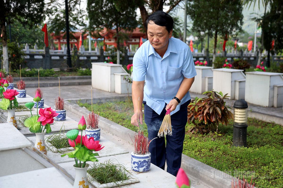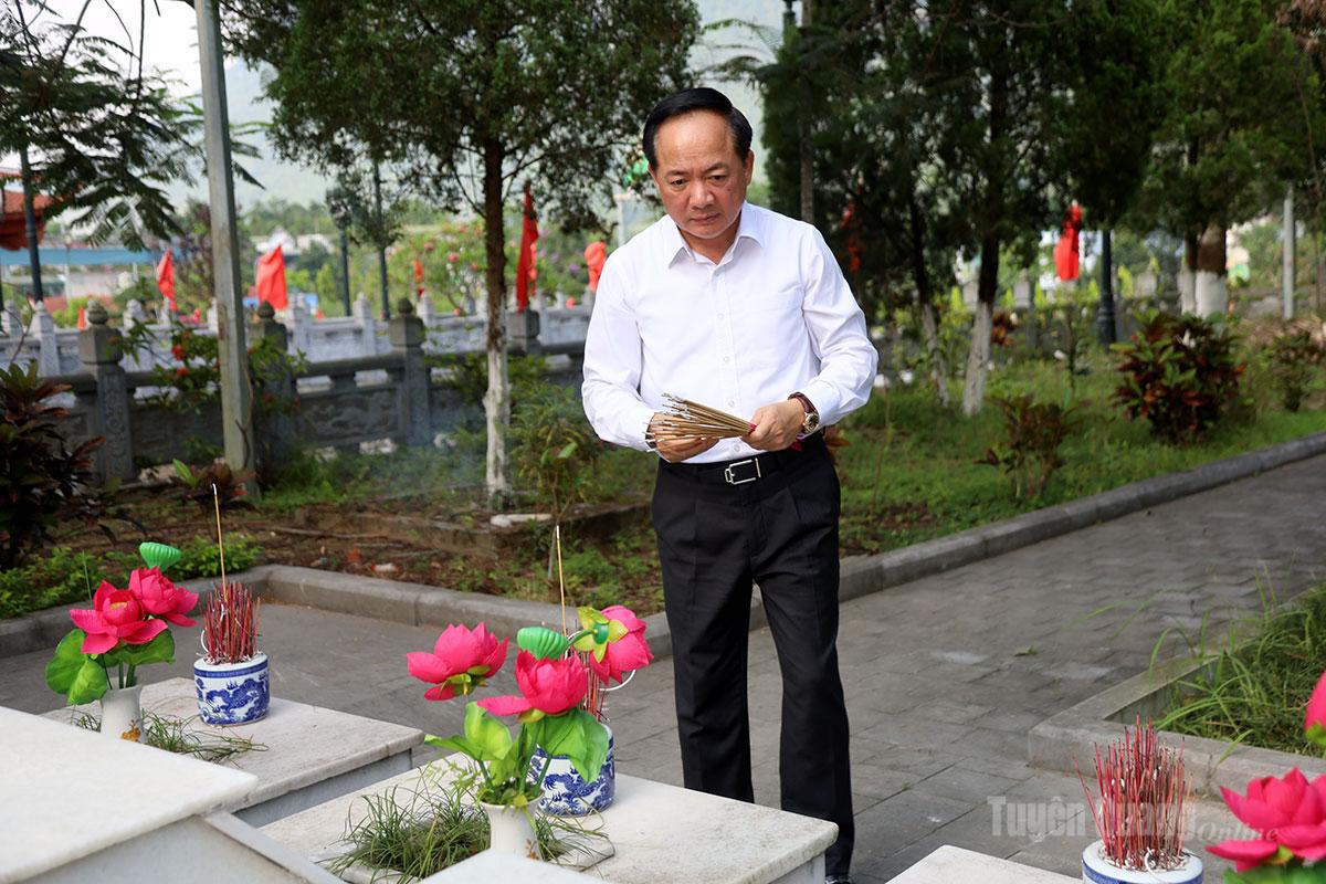 Bí thư Tỉnh ủy Hầu A Lềnh thắp hương các phần mộ Liệt sĩ.