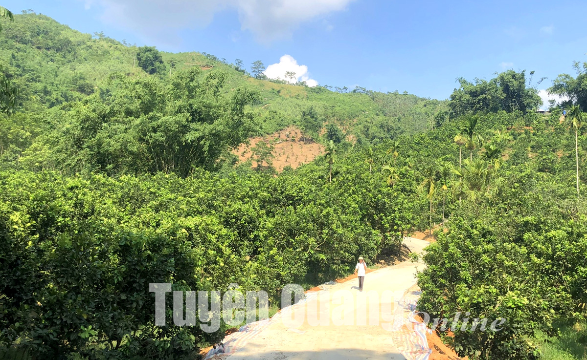Đường vào vùng sản xuất cây ăn quả ở thôn Đồng Tày, xã Xuân Vân (Yên Sơn). Ảnh: Thành Công