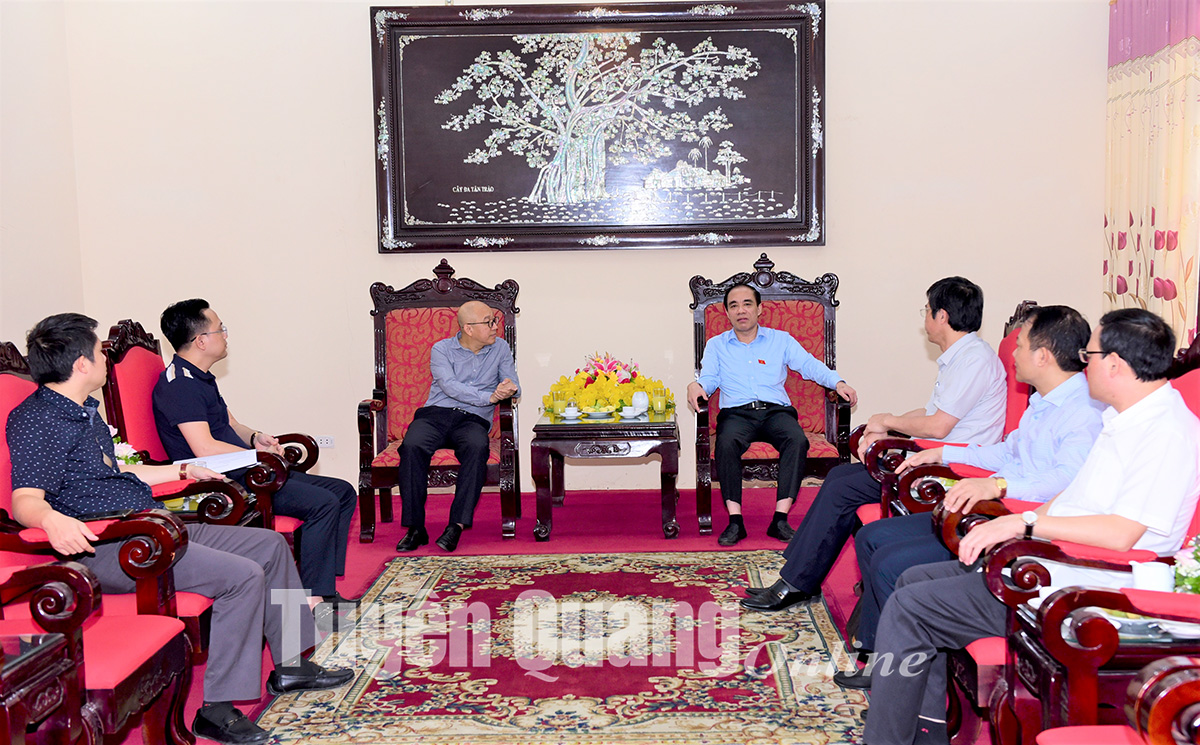 Ngày 28-10, đồng chí Chẩu Văn Lâm, Ủy viên BCH Trung ương Đảng, Bí thư Tỉnh ủy, Trưởng Đoàn đại biểu Quốc hội tỉnh cùng lãnh đạo UBND tỉnh, Sở Kế hoạch và Đầu tư, thành phố Tuyên Quang đã có buổi làm việc với ông Trần Kiên Cường, Giám đốc Phát triển dự án của Tập đoàn VinGroup.