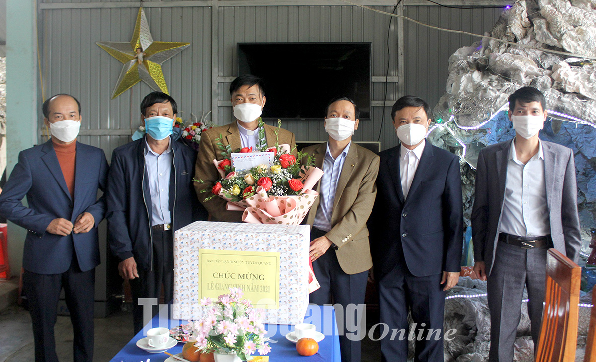 Lãnh đạo Ban Dân vận Tỉnh ủy tặng quà chúc mừng lễ Giáng sinh tại Giáo xứ Bạch Xa, xã Bạch Xa (Hàm Yên).