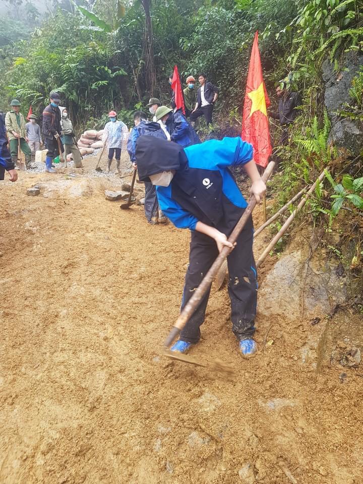 Các thầy cô giáo trẻ lao động làm đường cùng Nhân dân