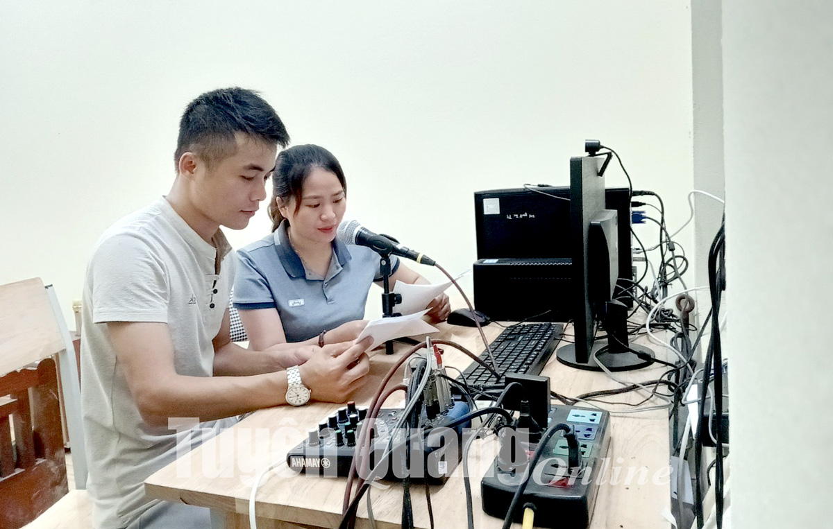 Cùng với được đầu tư cơ sở vật chất cho hệ thống truyền thanh các xã, phường, thị trấn, Sở Thông tin và Truyền thông, các huyện, thành phố tổ chức tập huấn, nâng cao trình độ nghiệp vụ cho đội ngũ cán bộ công chức văn hóa xã, những người trực tiếp sản xuất, tiếp sóng các chương trình truyền thanh. Nhưng hơn hết, đội ngũ này cũng không ngừng học hỏi, nâng cao trình độ, đáp ứng yêu cầu công việc được giao, góp phần đưa thông tin kịp thời đến với người dân. Anh Nguyễn Hải Dương, công chức văn hóa - xã hội xã Mỹ Bằng (Yên Sơn) cho biết, xã Mỹ Bằng hiện có 25/25 thôn có hệ thống loa truyền thanh không dây, tiếp sóng thông qua mạng 4G, tỷ lệ phủ sóng đến cụm thôn đạt 80%. Hiện xã vẫn còn 7 thôn do địa hình thấp, vướng núi nên việc thu, phát sóng yếu, không ổn định. Bình quân mỗi tuần xã sản xuất 2 bản tin, mỗi bản tin 5 phút. 6 tháng đầu năm 2022, Đài Truyền thanh xã đã biên tập được 78 bản tin, 122 thông báo. Để hoàn thành tốt việc vận hành Đài Truyền thanh xã, bản thân anh luôn nỗ lực tìm tòi, nghiên cứu, thường xuyên tham gia các lớp tập huấn nâng cao kỹ năng nghiệp vụ viết tin, bài; biên tập, sản xuất chương trình. Đến nay, anh đã có thể thuần thục làm chủ kỹ năng thu âm, chỉnh sửa bản tin bằng phần mềm chỉnh sửa âm thanh, đáp ứng yêu cầu công việc...